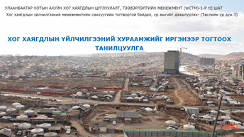 ТУРШИЛТЫН ТӨСӨЛД ХАМРАГДАЖ БУЙ ХОРООНЫ АЙЛ ӨРХӨӨС ХОГ ХАЯГДЛЫГ ЦУГЛУУЛАХ, ТЭЭВЭРЛЭХ ҮЕД ЖОЛООЧ, АЧИГЧ НАРЫН ДАГАЖ МӨРДӨХ АРГА ЗҮЙН ЗӨВЛӨМЖИЙН СУРГАЛТ БОЛОН АЖЛЫН БАЙРНЫ ДАРАМТ ХҮНИЙ ҮНДСЭН ЭРХИЙН СУРГАЛТ