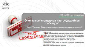 • Чанарын менежментийн тогтолцооныMNS ISO 9001:2016 стандартын танилцуулга