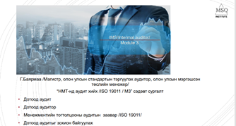 Сургалтын сэдэв: Нэгдсэн менежементийн Дотоод аудитор бэлтгэх