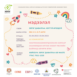 Хүүхдүүдээ идэвхтэй оролцоход нь дэмжсэн сургуулиудад бид хог хаягдлаа ангилан ялгахад нь сав болон аргазүйн дэмжлэг үзүүлэх томоос том шагналтай 🏆