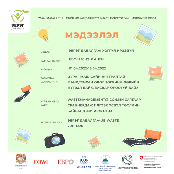 ✅Хүлээн авах хаяг: wastemanagement@icon.mn майл хаяг руу сканердаж явуулах эсвэл төслийн байранд авчирж өгөх